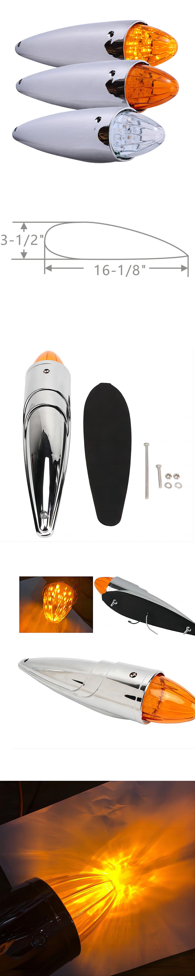 Sonically sealed, waterproofPopular torpedo-shaped cab marker lightTwo screws secure lens and baseAnti-vibration foam pad includedLead and ground wires with striped terminals