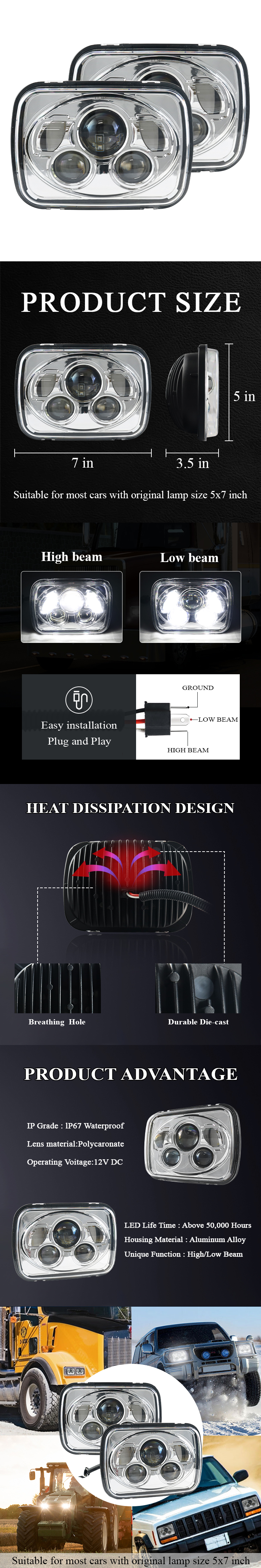 5x7-Esilatern,LED-esituli,Projektor-esituli,Ristkülikukujuline esituli