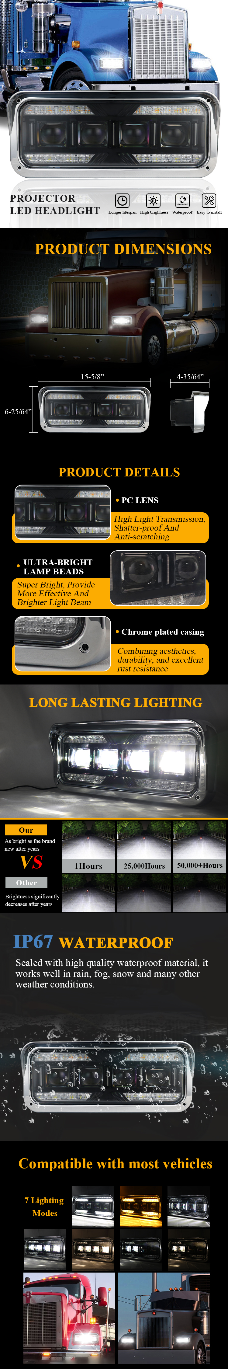 4"X6" Led Projector Headlight Assembly With Maker Light 4"X6" Led Projector Headlight Assembly With DRL Light