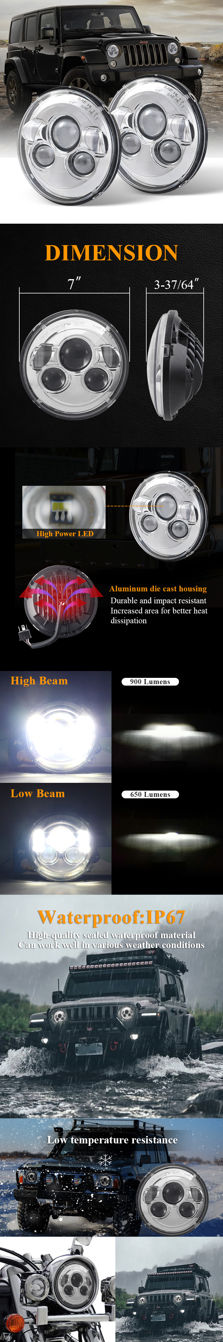 Faro da 7 pollici,Faro anteriore a LED,Proiettore-Faro,Faro rotondo