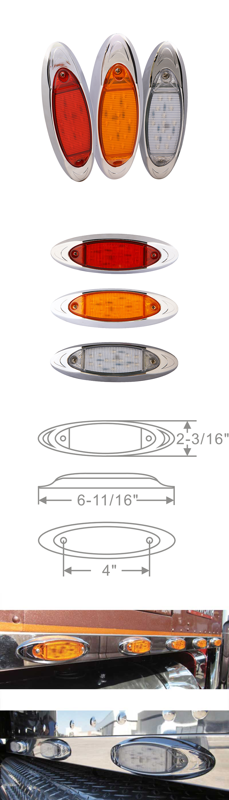 Material: Polycarbonate lens and housing; chrome-plated ABS trim ring
