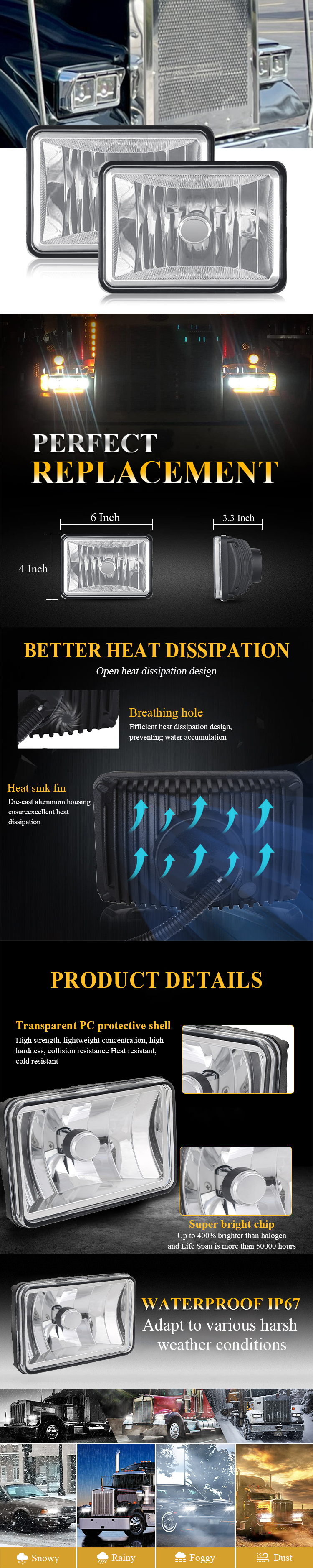 4x6-фара,Светодиодные фары,Отражатель-фара,Прямоугольная фара